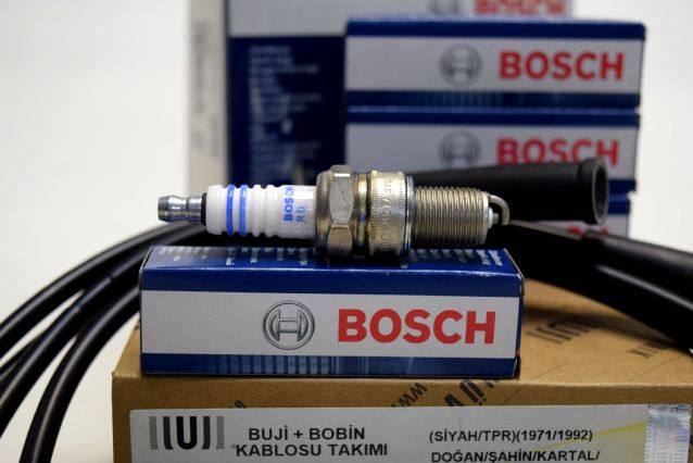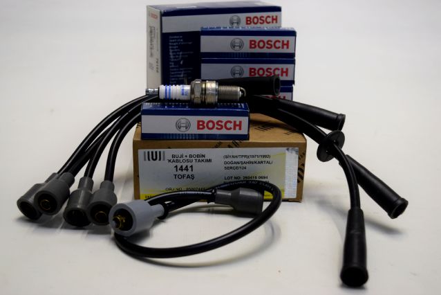 MURAT 131 1300 / 1600 - ŞAHİN KARTAL 1600 - PLATİNLİ ATEŞLEME SİSTEMİNE SAHİP TOFAŞ ARAÇLARIN ATEŞLEME BAKIM SETİDİR - 1- BOSCH MARKA DÖRT ADET BUJİ - 2- UNUVAR MARKA SİYAH BAŞLIKLI BUJİ KABLO TAKIMI İLE OLUŞAN ATEŞLEME BAKIM SETİDİR !!!